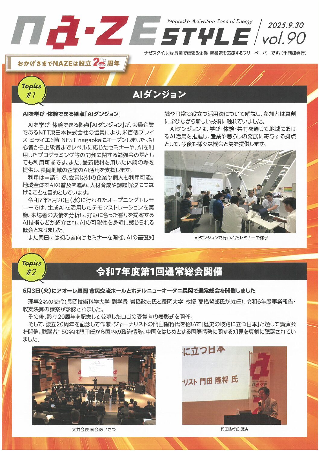 NPO法人 長岡産業活性化協会 NAZE〒940-2127 新潟県長岡市新産4丁目1番地9 NICOテクノプラザ内TEL.0258-42-8700 FAX.0258-42-8701E-mail info@na-ze.jp